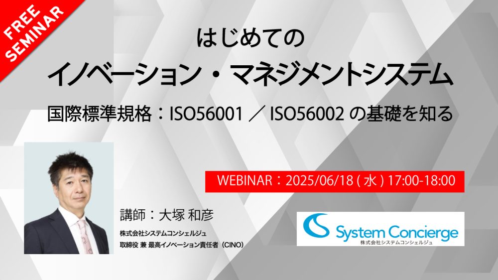 【開催終了】6月18日セミナー|はじめてのイノベーション・マネジメントシステム 国際標準規格:ISO56001 / ISO56002の基礎を知る